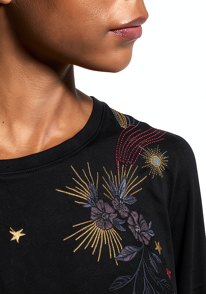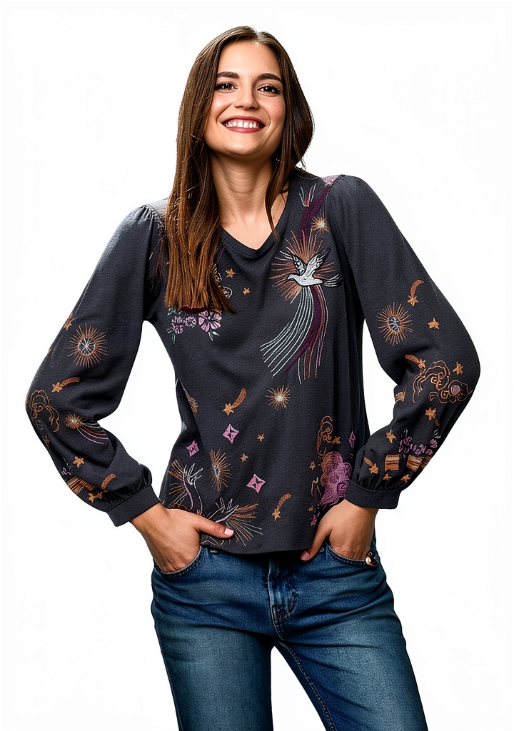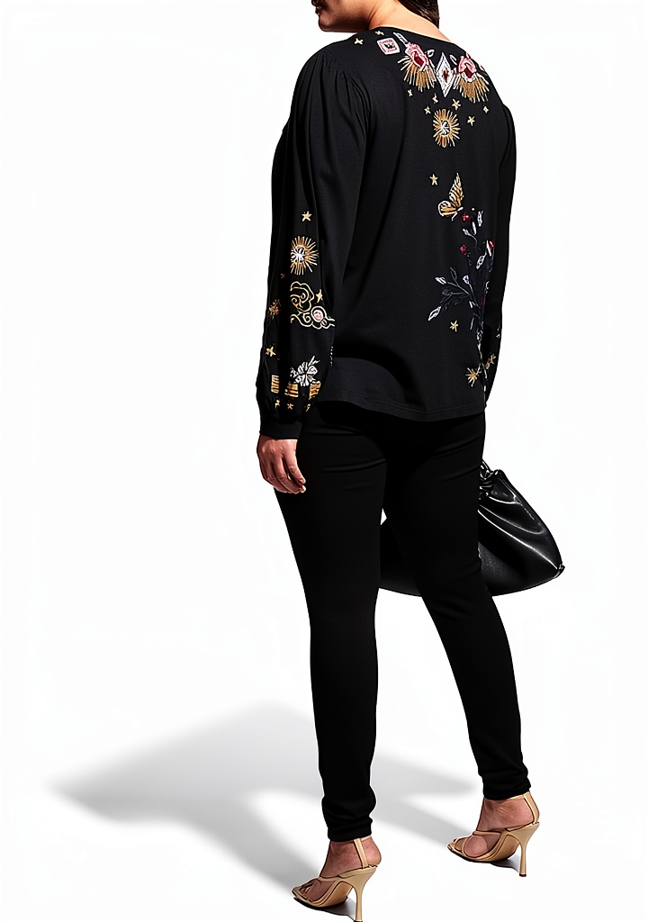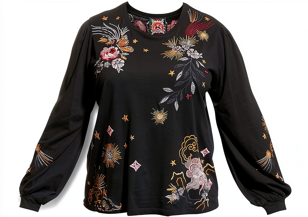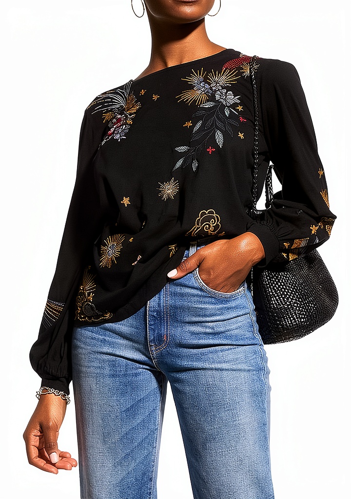 - Intricate embroidery for a handcrafted, artistic appearance