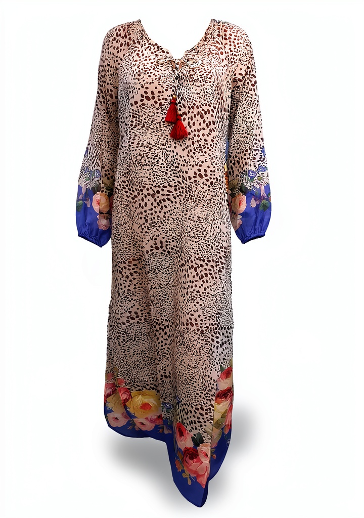 This maxi cover-up is perfect for various warm-weather occasions, from poolside relaxation to casual outings. Women can wear it over swimwear at the beach or resort for added modesty and sun protection, or style it as a lightweight dress for brunch or summer events. Its flowing design suits a range of body types, making it a versatile addition to any vacation wardrobe. Target audience includes women seeking elegant, easy-to-wear cover-ups that blend comfort with artistic prints, ideal for travel, lounging, or everyday summer wear.