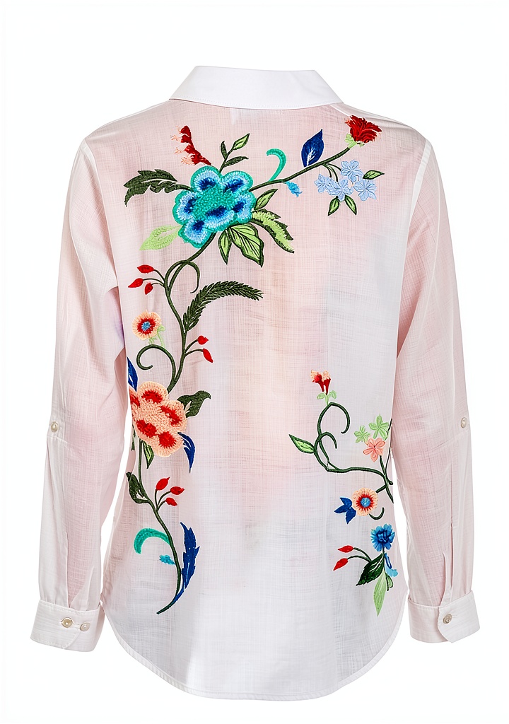 Ideal for a variety of occasions, this shirt is perfect for professional environments, casual gatherings, or semi-formal events. Its tailored design and floral accents make it suitable for women seeking a polished yet approachable look. Wear it to the office paired with trousers, for weekend outings with jeans, or to social functions where style and comfort are equally important. The long sleeves provide coverage and versatility across seasons, while the standard length ensures a neat appearance without being overly restrictive.
