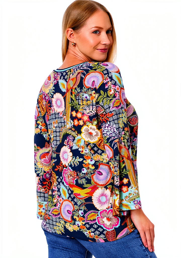 This Johnny Was womens T-shirt combines style and comfort with its soft, stretchy fabric that ensures ease of movement and a flattering fit. Designed for everyday wear, it features a multicolor pattern and is available in sizes from Small to 3X to accommodate various body types. The fabric is breathable and durable, making it a reliable choice for casual outings or relaxing at home. With a focus on quality craftsmanship, this T-shirt reflects the brand’s commitment to creating wearable art that enhances your wardrobe effortlessly.